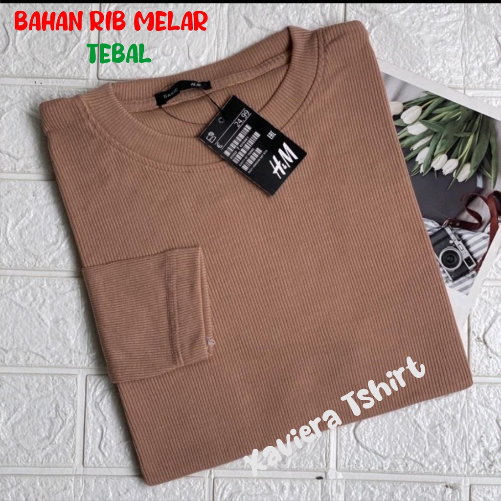 Kaos Polos Rip Premium Lengan Panjang Wanita Detail Ukuran