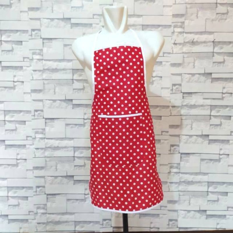Apron Celemek Masak Bahan Cotton Polkadot & Nylon Waterproft