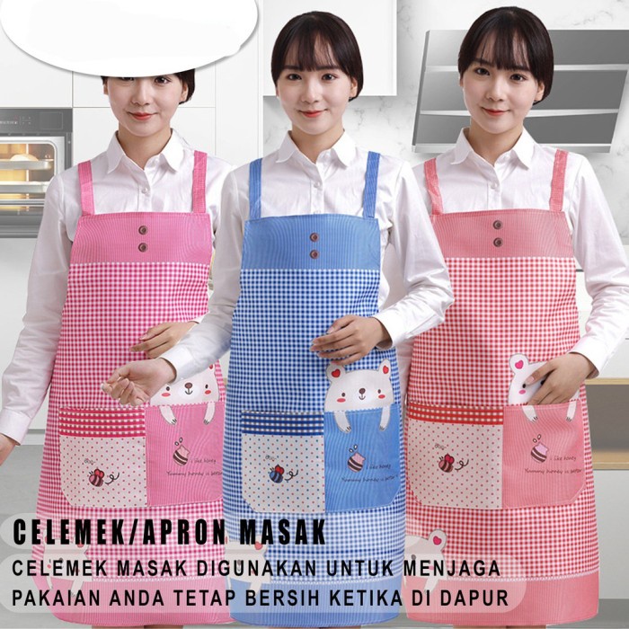 Keunggulan : - Celemek berbahan anti air - Motif tidak mudah luntur - nyaman saat digunakan - Terdapat tali pengikat untuk penyesuaian ukuran - terdapat kantung di bagian depan