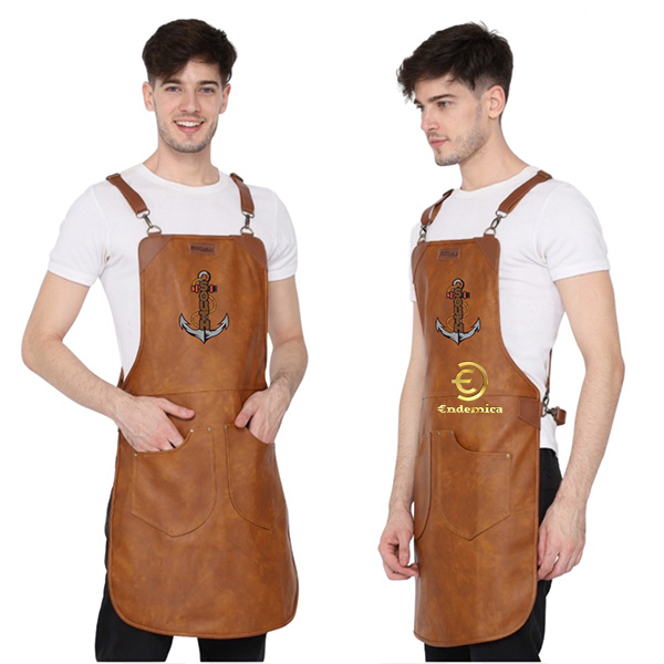 Perlengkapan Rumah > Peralatan Dapur > Celemek & Pelindung Tangan > apron premium full synthetic leather pedro for barista barber etc crossback strep plus bordir logo