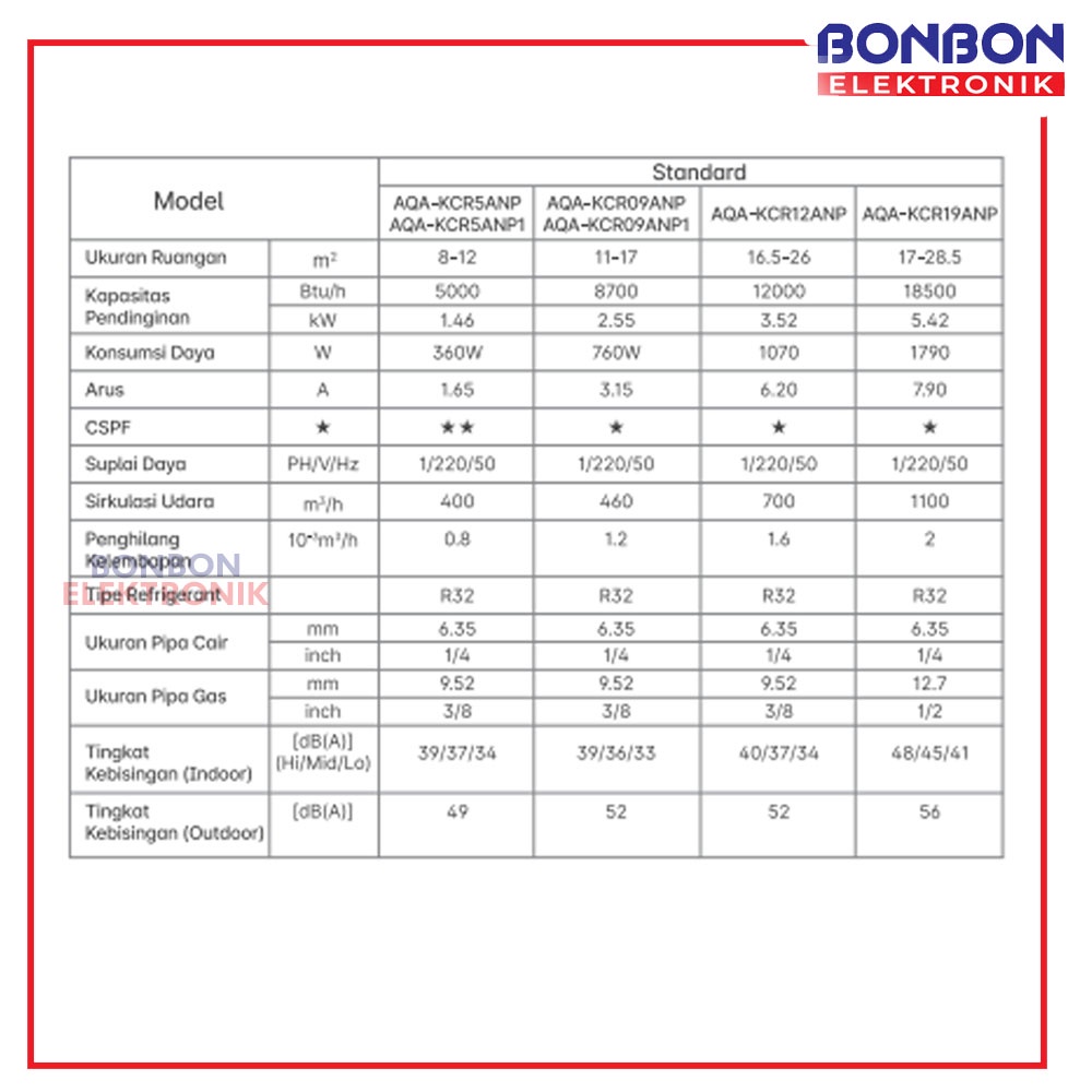 Detail Aqua AC Split 1 PK Standard AQA-KCR09ANP / AQAKCR9ANP / KCR9ANP 1PK