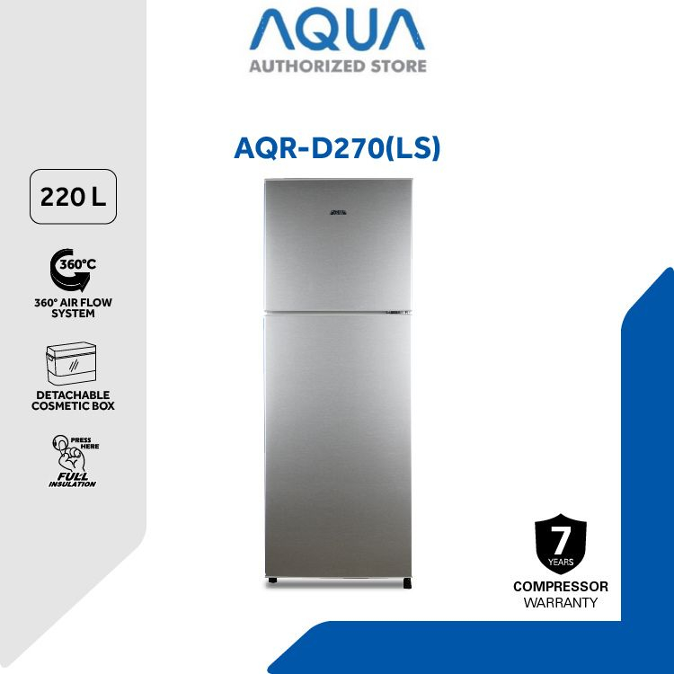 AQUA Japan AQR-D270 kulkas tempered glass 2 pintu dengan Cosmetic Box untuk menyimpan alat rias. Teknologi Full Insulation berperan untuk mempercepat proses pendinginan. Inovasi 360° Air Flow yang dapat mengalirkan udara dingin secara merata sehingga temperature seragam di seluruh ruangan di bagian dalam fridge. Bigger Vegetable Box mampu menampung sayuran lebih banyak, cocok untuk Anda yang hobi memasak.