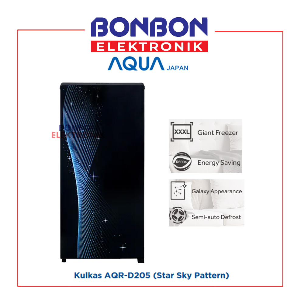 AQR-D205 kulkas 1 pintu Star Sky Pattern dengan kapasitas 165 liter yang cocok untuk sobat AQUA, dengan teknologi refrigerant R600a yang ramah lingkungan dan konsumsi daya yang rendah. Selain itu kulkas ini juga memiliki kapasitas freezer yang cukup besar dan sudah menggunakan teknologi semi-auto defrost