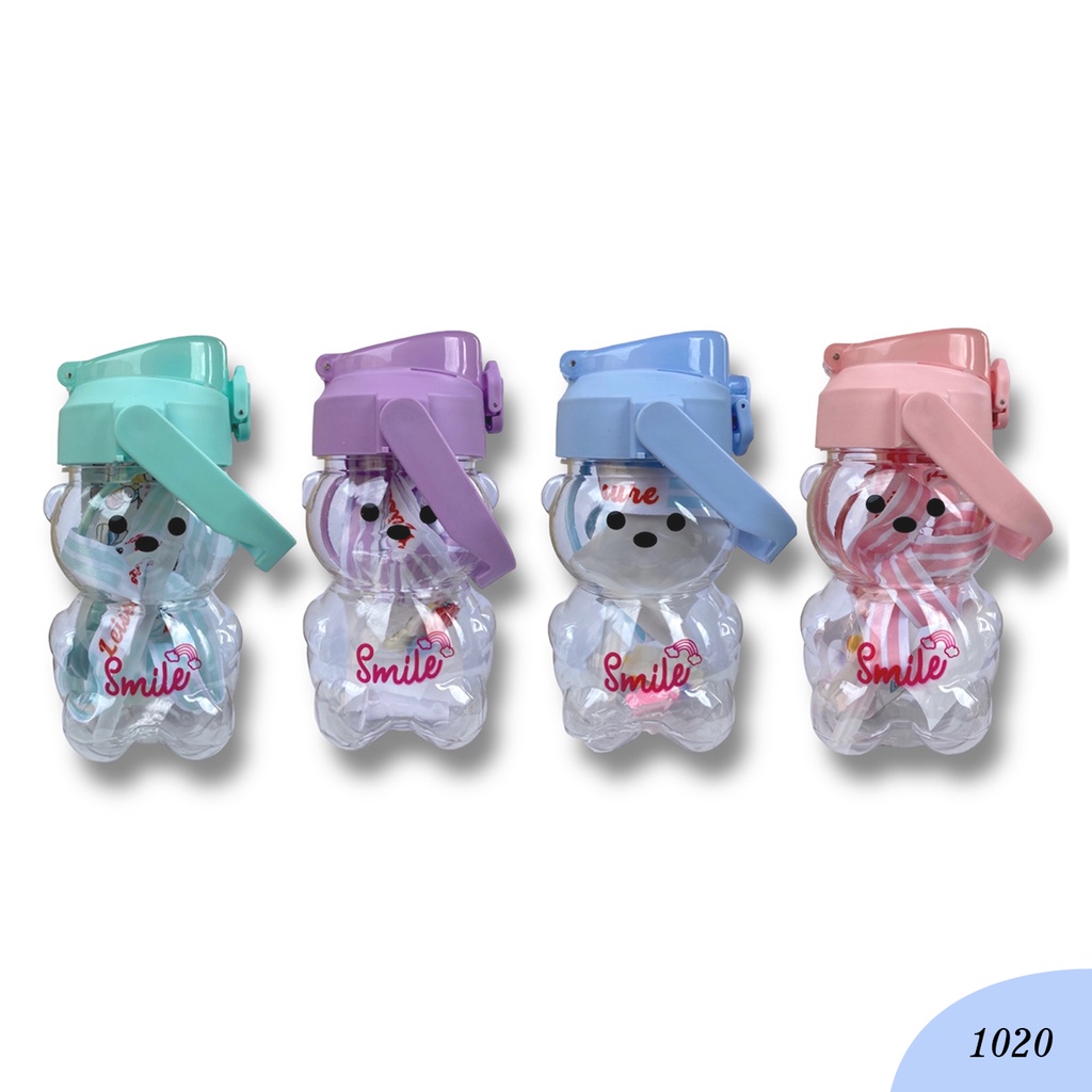 Botol minum beruang ini sangat aman untuk anak-anak, dengan desain yang lucu lebih praktis sehingga mudah dibawa kemana mana, bisa dibawa untuk bekal minum kesekolah, atau pada saat rekreasi dan jalan-jalan. Dengan kapasitas 1400ml, Terbuat dari plastik bening dan tebal, Dengan penutup Flip Up with Lock yang aman dan Anti Bocor.