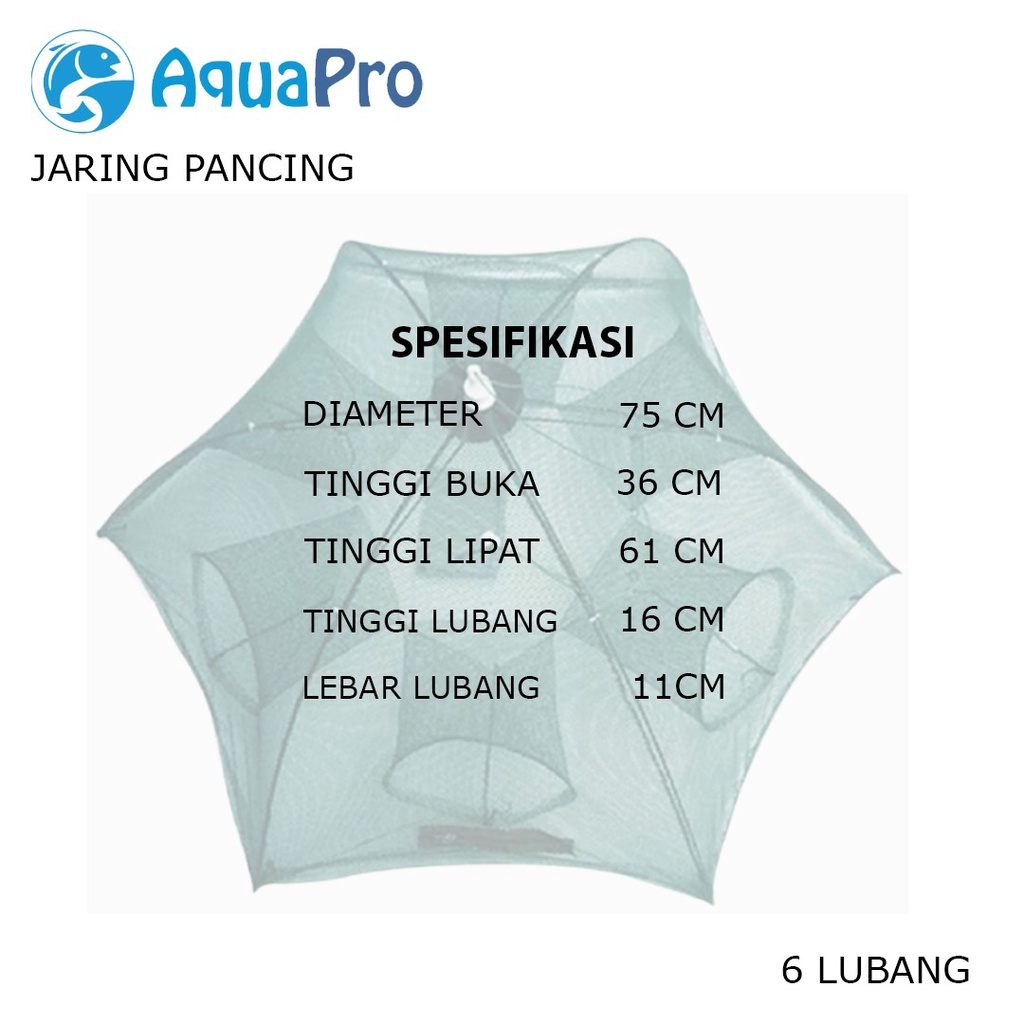 Detail Aquapro Payung Bubu Jaring 6 Lubang Jebakan Perangkap Udang ikan Kepiting Model Payung 6 Lubang
