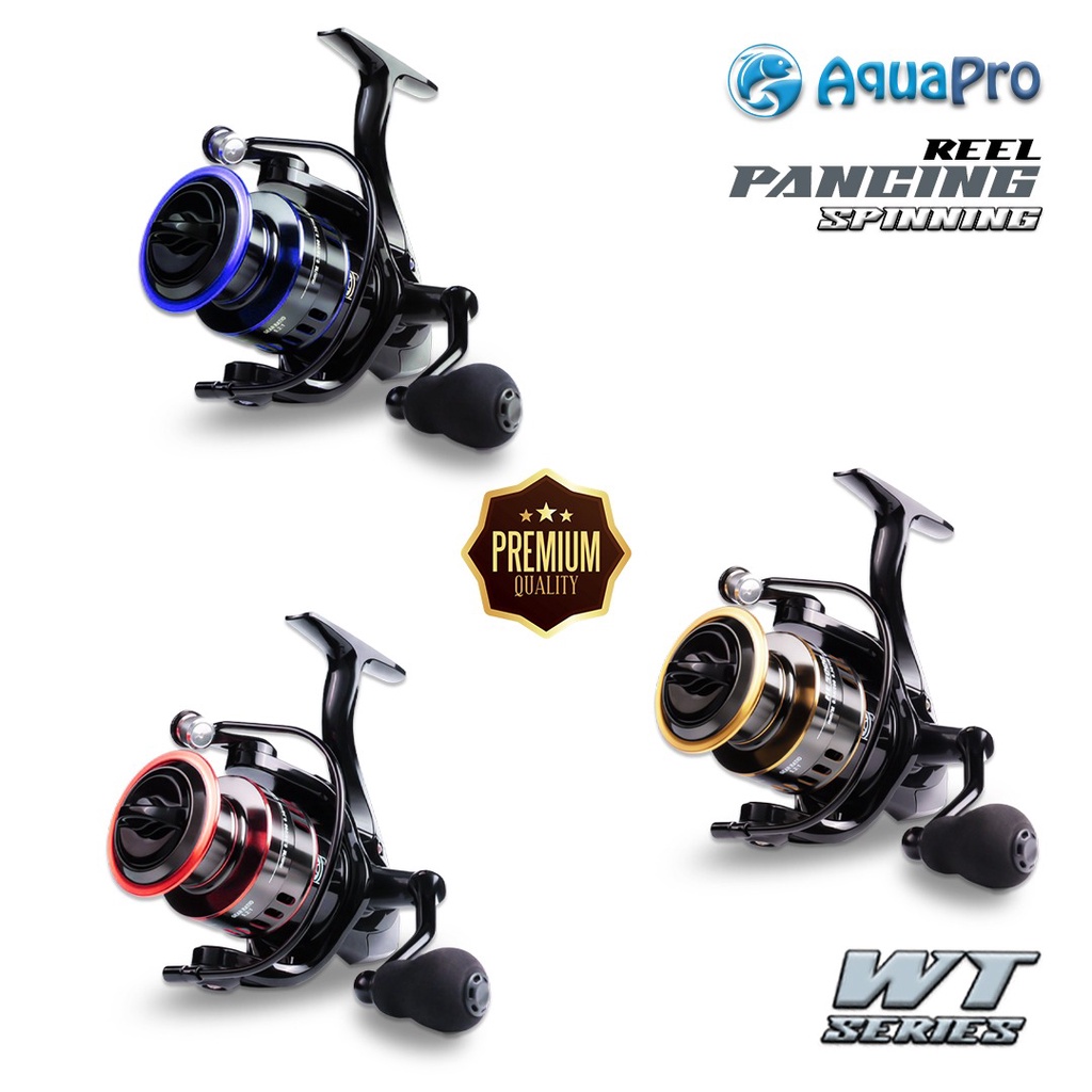 Spesifikasi: + Merek: AquaPro + Kapasitas spul: 1000-7000 + Power Handle + Gear Ratio: 5.2: 1 + Line Cup: Metal(Aluminum alloy) + Baits Type: Fake Bait + Fishing Method: Memintal + Warna: emas hitam + Max Drag: 10KG