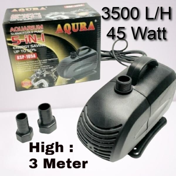 Pompa Air Celup Kolam Ikan Aquarium Aquascape Akuarium AQURA ASP 105A 45 Watt 3 Meter 3500 Liter.