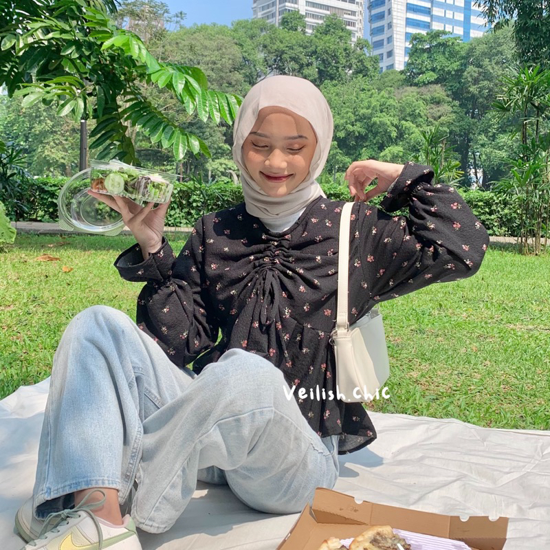 hi guys ini new arrivalnya veilish.chic ARA TOP, superr gemesss ga sii🥹🌷, bunga2nya itu loo 💗