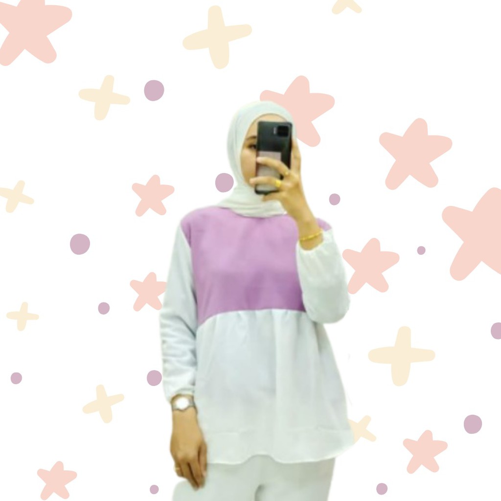 Detail Arde top blouse / atasan blouse meyuna 2tone / atasan wanita dua warna
