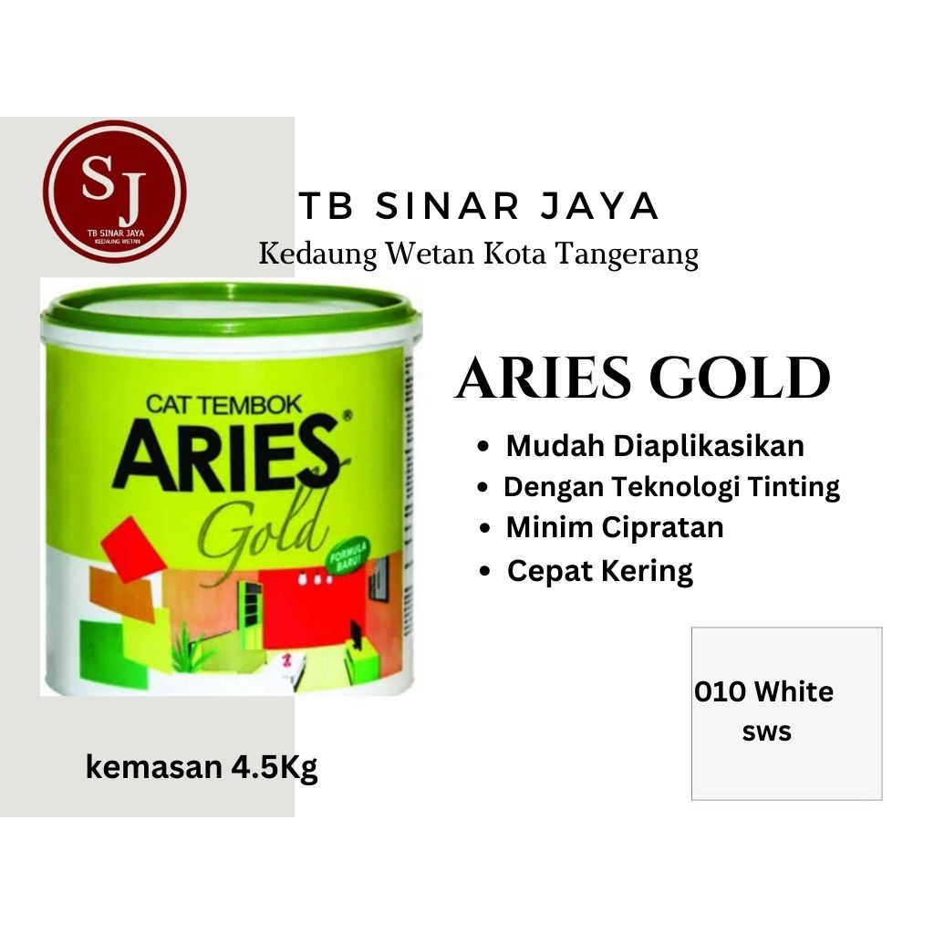 Perlengkapan Rumah > Renovasi Rumah > Cat & Pelapis Dinding > Aries Gold Galon 4.5Kg Cat Tembok Dinding Plafon Interior -010 White sws