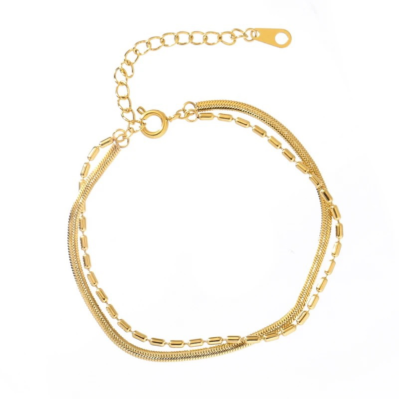 Aksesoris Fashion > Gelang Tangan & Bangle > Ark.co - Cyan double bracelet (tosca & chain gold) gelang tangan tumpuk fashion minimalis