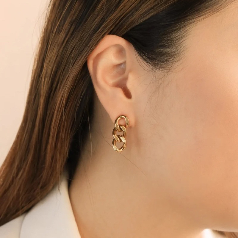 Ark.co - New Loras chain cuban curb unisex stainless steel earrings & necklace & bracelet anting kalung gelang gold black rantai minimalis