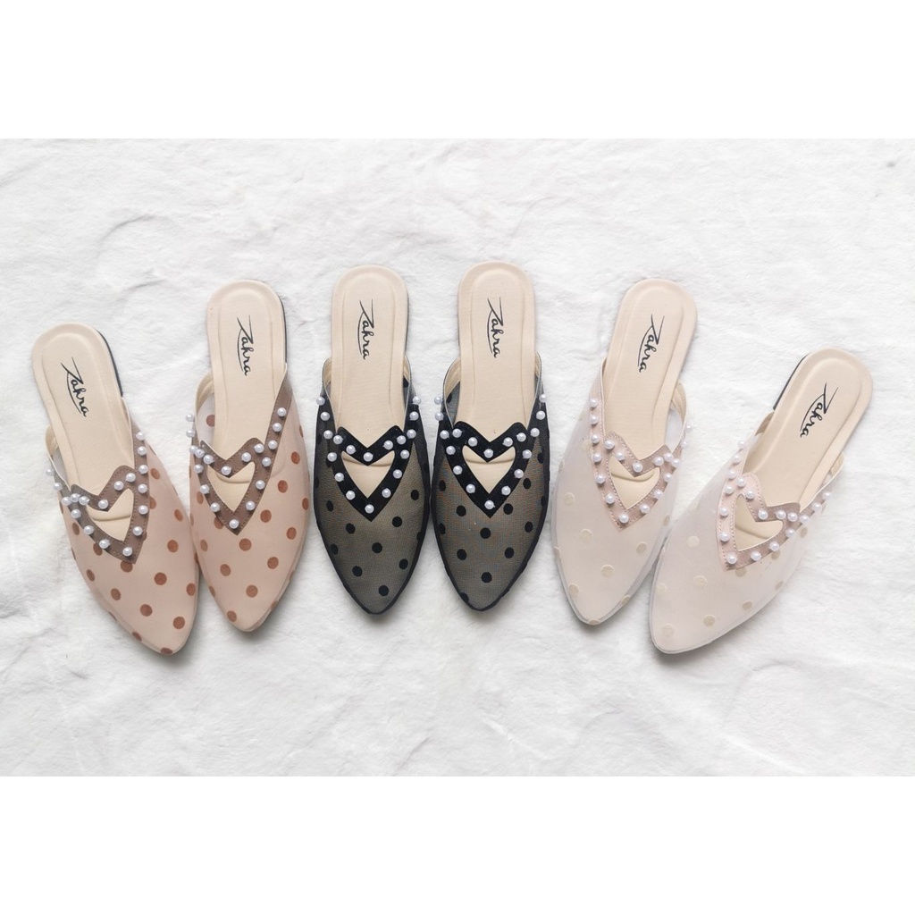 Sepatu Wanita > Sandal > Sandal Jepit & Sandal Lainnya > Arlaine - Talia selop wanita / sandal slop wanita / sandal brukat / flatshoes polkadot / sandal mutiara