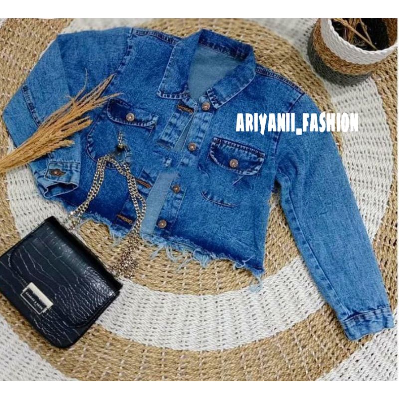 Pakaian Wanita > Denim > Outer Denim > ARN - JAKET WANITA JEANS CROP OVERSIZE PITA JACKET DENIM MURAH KEKINIAN JINS SOBEK RAWIS CEWEK KOREAN ORIGINAL SNOW MODEL GAMBAR BELAKANG EMBLEM 3D Style BARU
