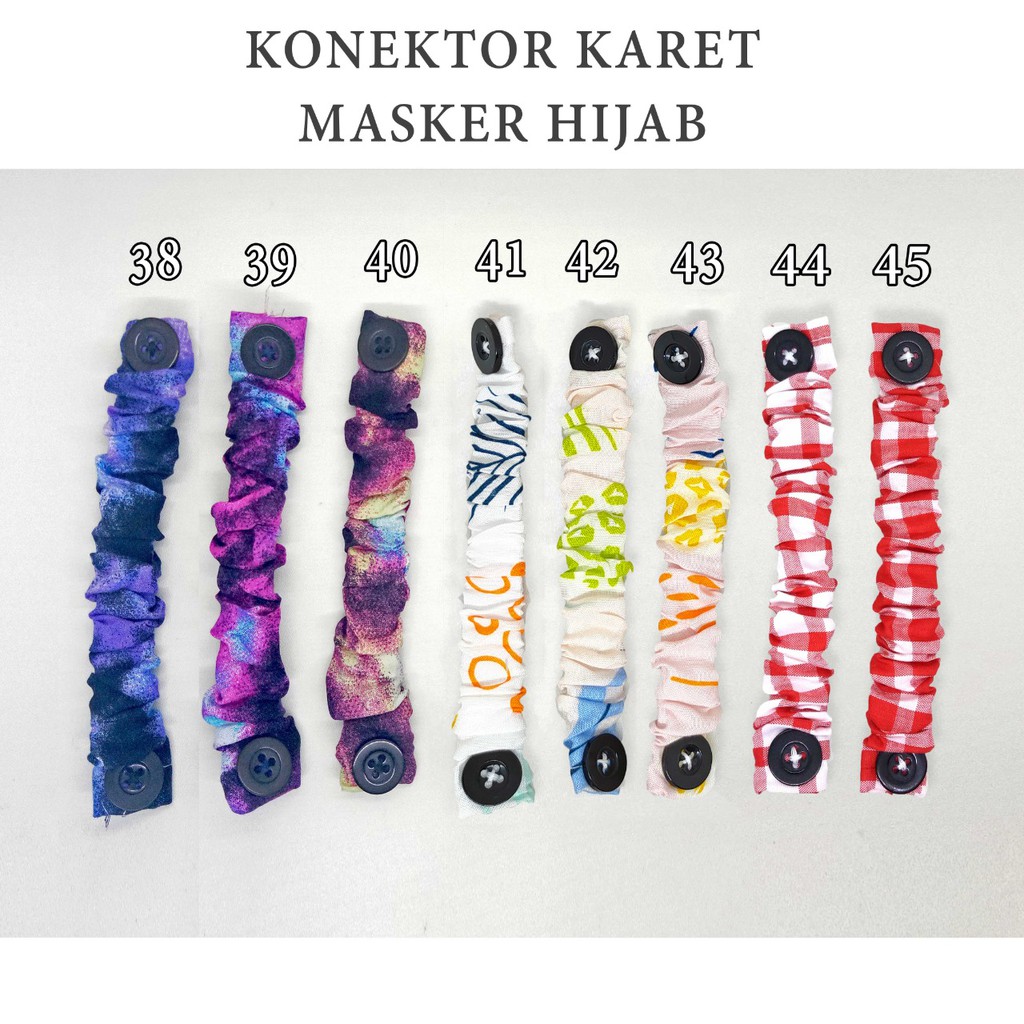 Connector masker headloop Tersedia 43 motif dan akan bertambah terus Bahan bisa sewaktu waktu berubah Bagian dalam karet yang sangat flexible sehingga nyaman di pakai Menggunakan kancing 4 lubang agar lebih kuat Ukuran : Panjang : 17-27 cm Lebar ; 2 cm Ukuran toleransi -=1 cm