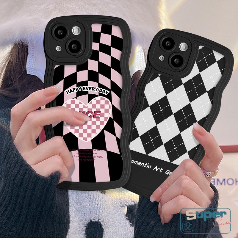 Detail Art Retro Love Heart Case Untuk Samsung A23 A14 A13 A12 A31 A52 A21s A52s A33 A04 A32 A50s A50 A04s A22 A02s A53 A03s A20 A30s A04E A51 A11 Casing Kotak-Kotak Twist Tepi Bergelombang Lembut