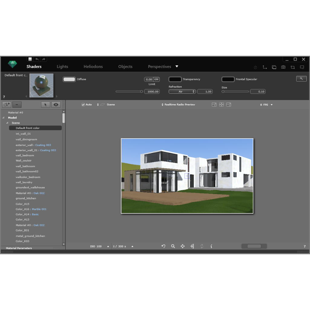 Fitur Terbaru : – 243 codified colors and tints from Ral Effect, RAL Design, and RAL Classic color chart – New cool denoiser tool – Enhanced 3D Grass catalog – Portals Tool – Visualize 2D and 3D views – Set parameters associated with shaders, objects, lights, heliodons, and perspectives – Site insertion tool – Vegetation tool – Media catalog – Automatic exposure – Supports DWF, OBJT, FBX, 3DS (3D Studio Max), DWG, and (SKP (Sketchup) – Detachable 3D model elements – Animate clouds and water surface by activating wind parameters, direction, and speed