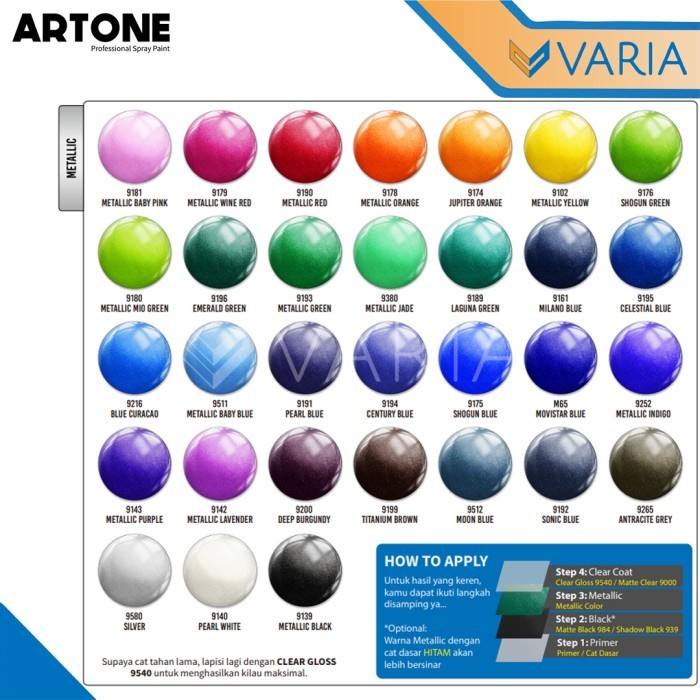 Merk: Artone Isi: 200 cc Kode Warna: 9139 Warna: Metallic Black