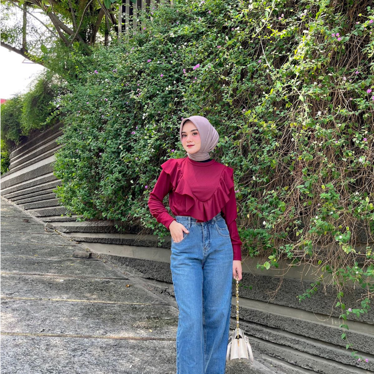 Detail Aruna Top Ruffle Blouse - Knit Top Polos - Blouse Cotton Rib - Blouse Layer - Daily Blouse