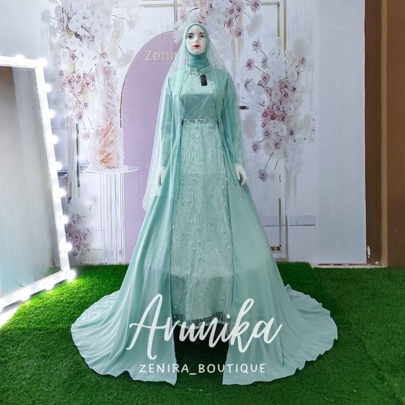 Bahan dan detail : - Roberto cavali lembut dan glamour - Full lapisan tulle bordir / brukat (motif menyesuaikan stok) - Rok cutting umbrella super lebar - Free Veil - Berpayet pinggang dan leher, dan bertabur mutiara diseluruh badan