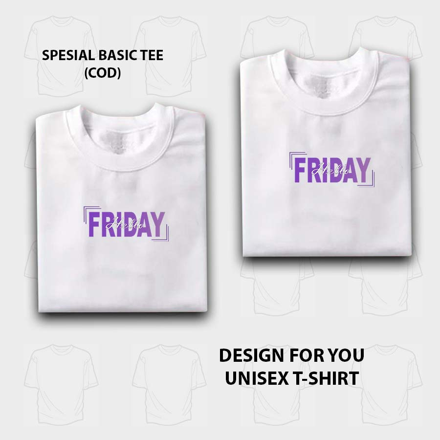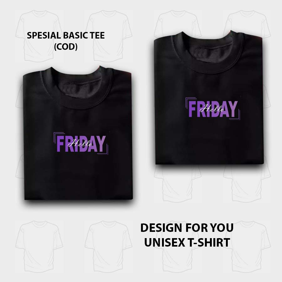 Detail AS / kaos distro motif hello friday / baju pria / kaos pria / baju wanita / kaos wanita / pakaian murah / pakaian pria / atasan / polos