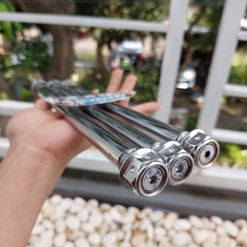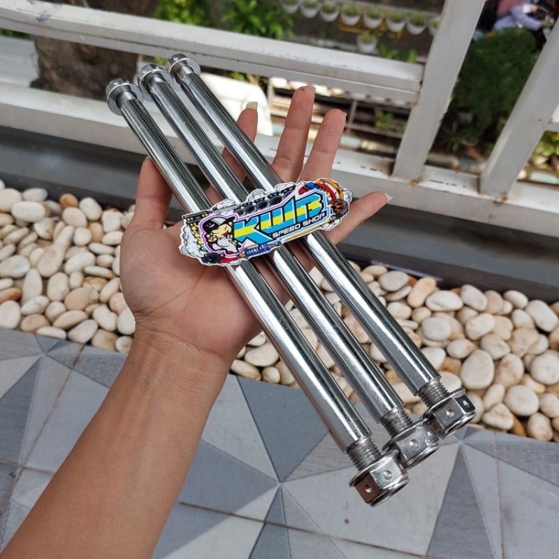As roda depan as 19 panjang 29cm mur kancing kanan kiri model probolt warna crom pnp as roda belakang sport bebek as 19 pnp arm mos k2r sjinjiro aitech dll