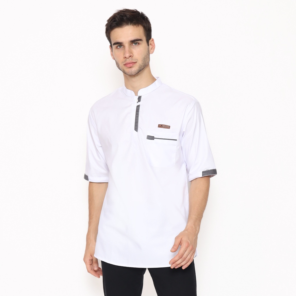 Detail Asakhi - Baju Koko Kurta Pria Lengan Pendek Motir Arzad Warna Putih M L XL