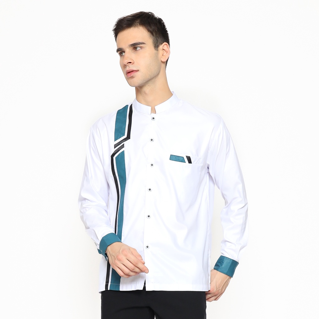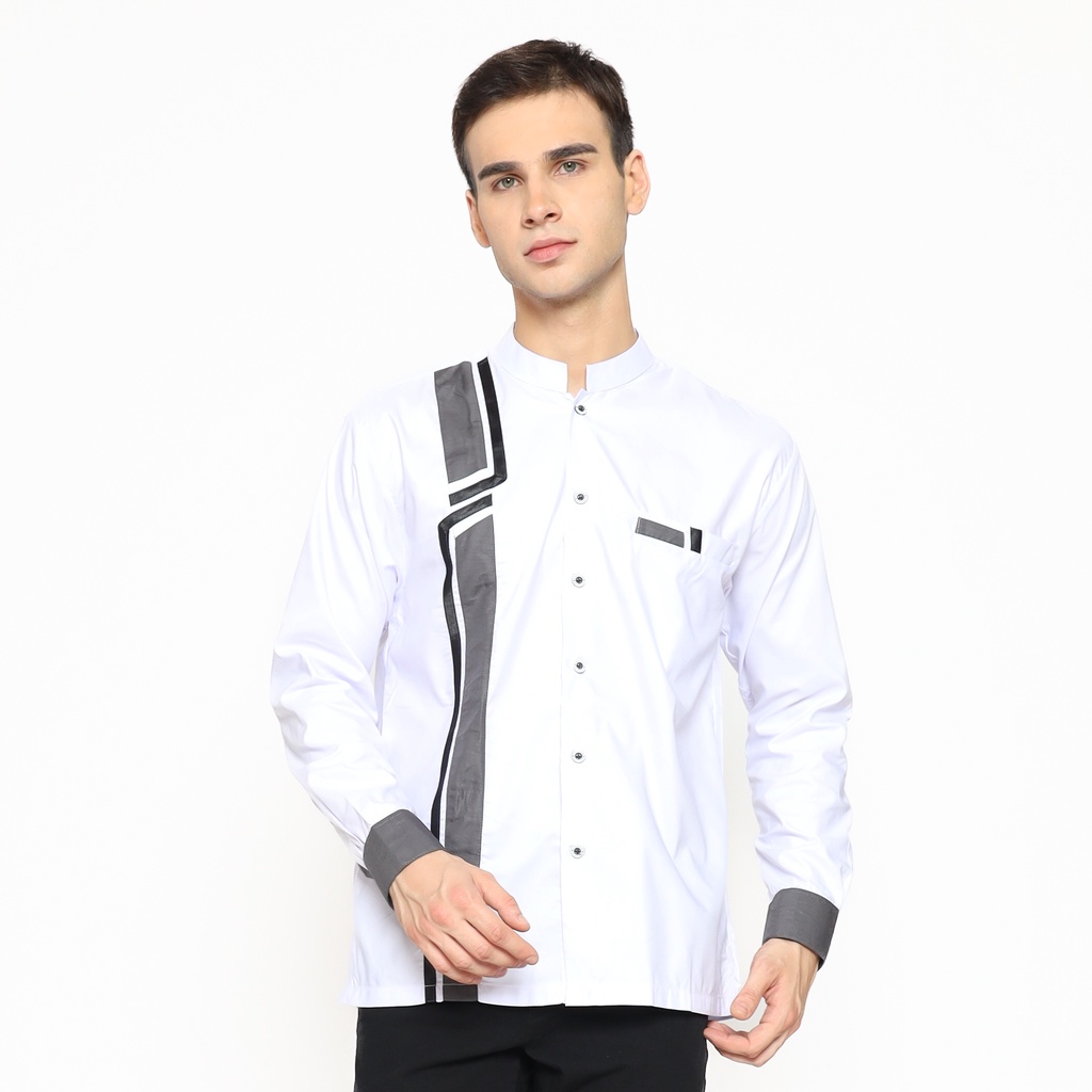 Fashion Muslim > Pakaian Muslim Pria > Atasan > Asakhi - Baju Koko Pria Muslim Lengan Panjang Koko Hadroh Azzahir Motif Petir Warna Putih kombinasi Abu M L XL