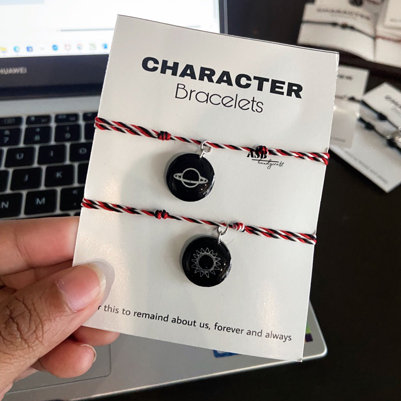 Detail ASB - Sepasang gelang akrilik bulan dan matahari tali Tridatu