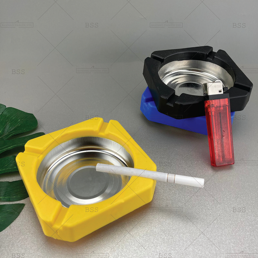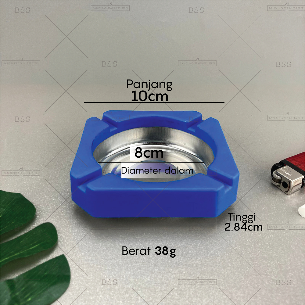 Asbak persegi lucu 3 warna murah stainless plastik hitam biru kuning