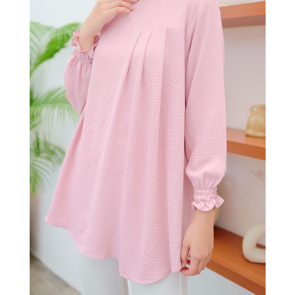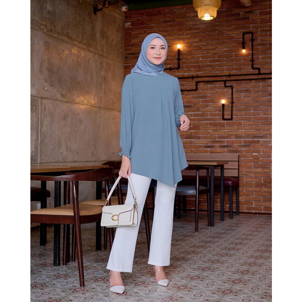 Material bahan diario airflow. Bahannya bertekstur crinkle, ringan, tidak panas, ironless, dan flowy, jatuhnya cantik saat dipakai. ✔️Detail kancing belakang untuk memudahkan akses pemakaian ✔️Detail tangan katet (wudhu friendly) Tersedia 6 pilihan warna dan 4 Ukuran S,M,L,XL