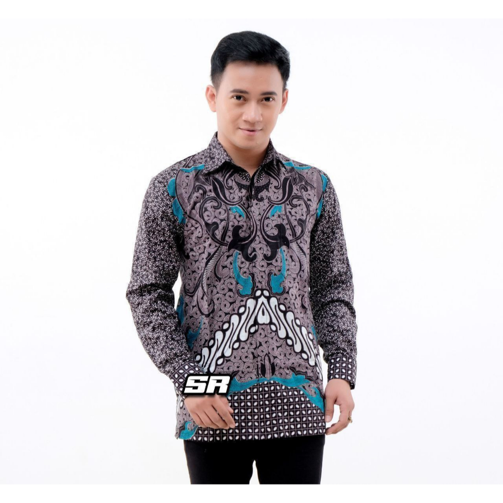 Asifa Batik HRB026 Kenongo Kemeja Tosca Pendek Pekalongan Padi M L Xl Sogan Tulis Halus Kemeja Batik