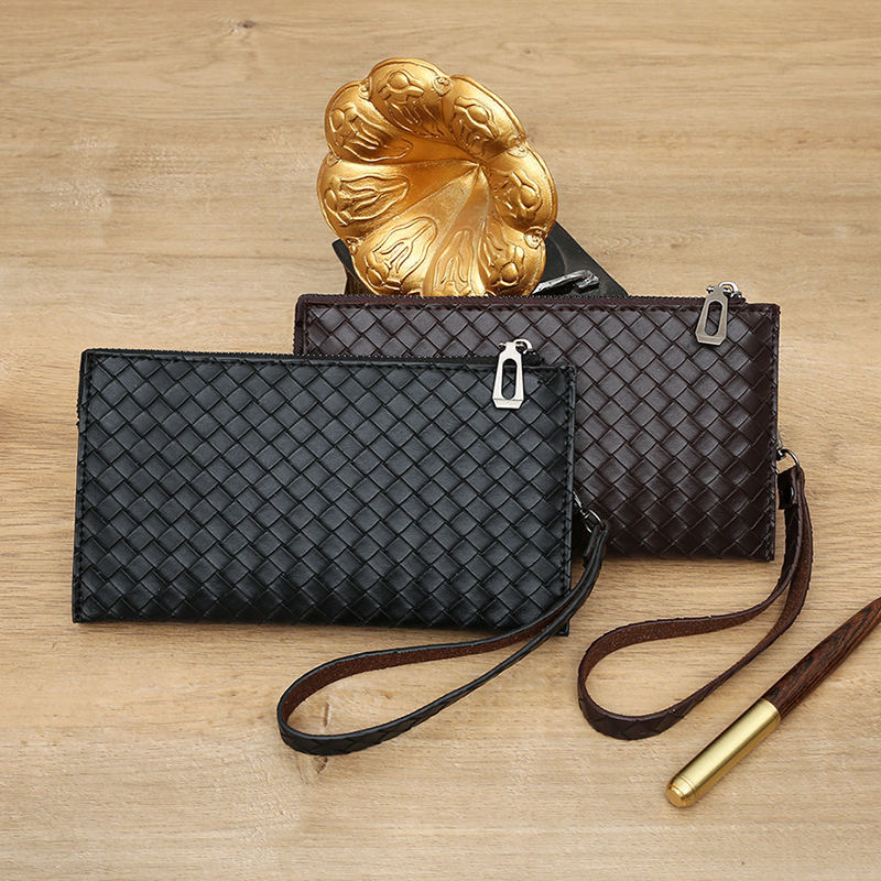 Detail ASIN829 Dompet Panjang Pria Dompet Tenun Bertekstur Kulit Pria Ritsleting Gaya Kopling 1629 Dompet Fashion Dompet Bisnis Pria