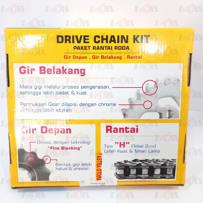 -Fitur / Manfaat 1. High Performance 2. Rantai Tipe H Lebih Tebal dan Tahan Lama 2mm 3. Gir Belakang Dilapisi Chrome sehingga Lebih Padat dan Lebih Kuat 4. Gir Depan dibuat dengan proses Fine Blanking, Bentuk Gigi halus dan Presisi 5. Bunyi halus saat akselerasi 8. Material Sudah Terjamin Original ASTRA Quality