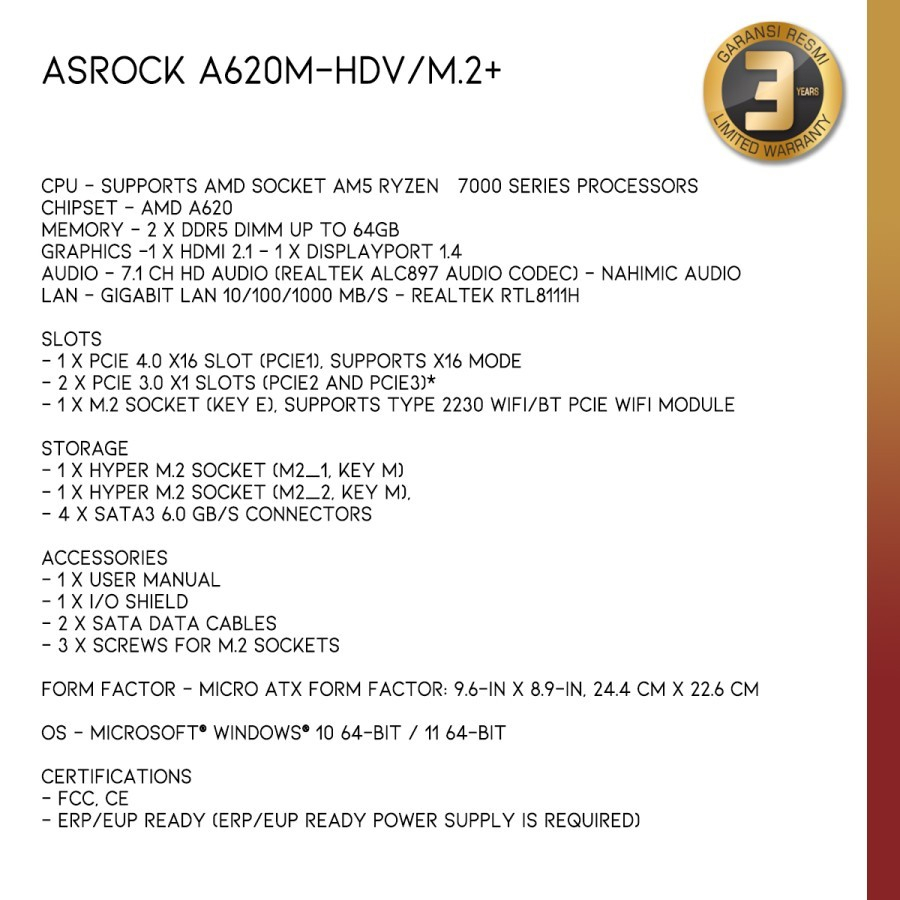 Graphics Integrated AMD RDNA™ 2 graphics (Actual support may vary by CPU) - 1 x HDMI 2.1 TMDS/FRL 8G Compatible, supports HDR, HDCP 2.3 and max. resolution up to 4K 120Hz - 1 x DisplayPort 1.4 with DSC (compressed), supports HDCP 2.3 and max. resolution up to 4K 120Hz