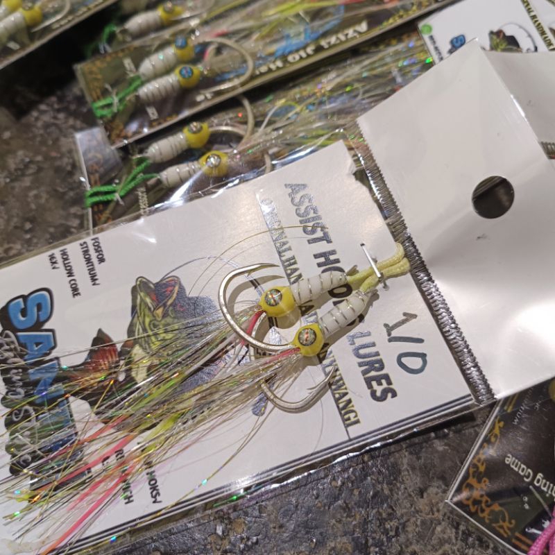 Jawa timur Store Santri Style production. TERMURAH Desain Keren. Spekk Assist hoks. #👉Kail Model Pike Series Slow jigging. INTERNATIONAL HOKS TAHAN KARAT.√ #👉JENIS RESIN TIPE KERAS KUAT. BUKAN RESIN UV YANG MUDAH ROMPOL DI GIGIT IKAN√ 👉Size #1/0 kevlar 250lbs. REKOMENDASI jig 60-100gram #2/0 kevlar 250lbs REKOMENDASI JIG 100-150 gram #3/0 kevlar 300lbs REKOMENDASI JIG 150-250gram #4/0 kevlar 300lbs REKOMENDASI JIG 250-400gram #5/0 kevlar 400lbs REKOMENDASI JIG 400-800gram Semua tergantung ANGLER MASING2 YA. DI ATAS HANYA REKOMDASI SAJA