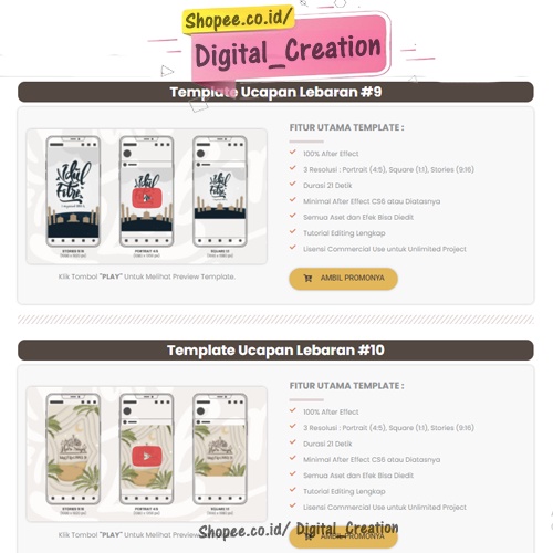 Video perkenalan produk ASTA Digital Bundling Template Ucapan Lebaran Ramadhan | Volume 2. Sumber: Shopee.