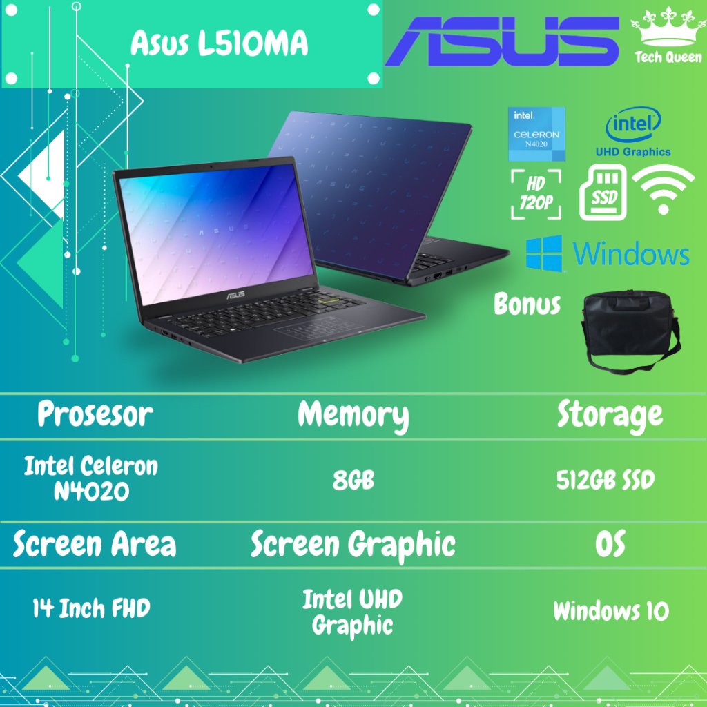 Merek : ASUS Type Laptop : ASUS L510MA N4020 4GB 256SSD W10 15.6FHD