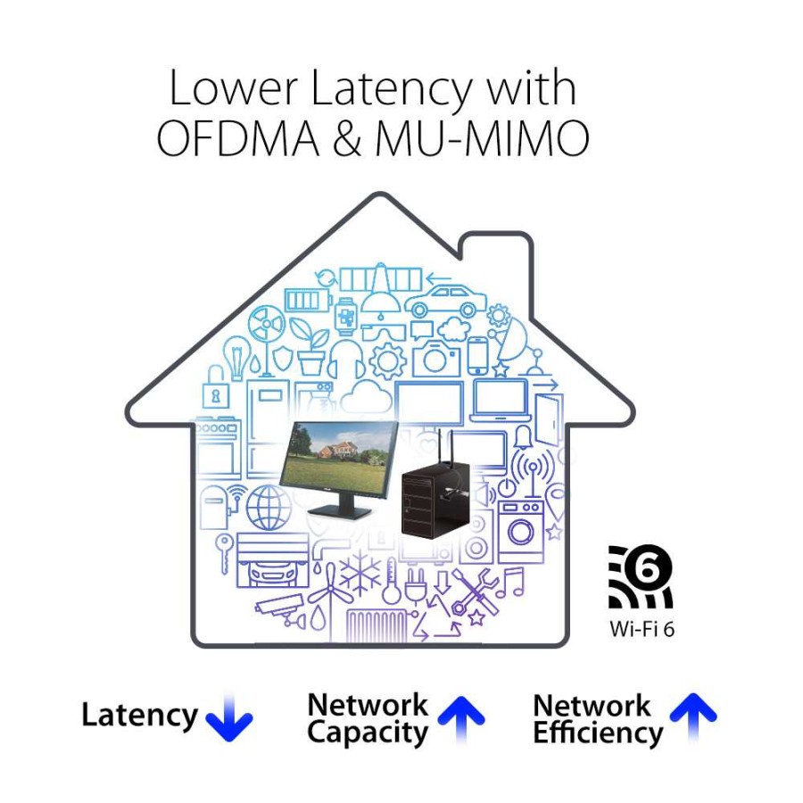 Feature : - Next-Gen WiFi Standard - WiFi 6 (802.11ax) standard for better efficiency and throughput. - Ultrafast WiFi Speed - 3000 Mbps WiFi speed to handle even the busiest network with ease. - WiFi 6 Technology - With OFDMA and MU-MIMO, WiFi 6 enables more efficient, stable, and faster transmission even when multiple devices are transmitting data at the same time. - Bluetooth 5.0 for Faster, Further Coverage - Transfer data up to twice as fast as before, and with 4X the range. - Reducing Dead Zones with External Antenna - Freestanding transceiver and connecting cable allows easy positioning for the best reception.
