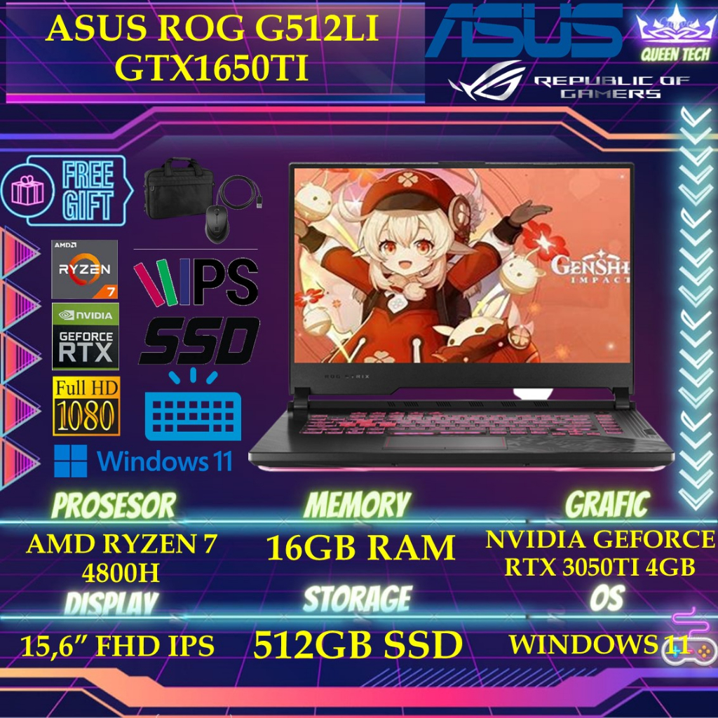 Detail ASUS ROG G512LI - GTX1650TI 4GB I7 10750 16GB 512SSD WINDOWS 10 15.6 INCHI FHD 144HZ
