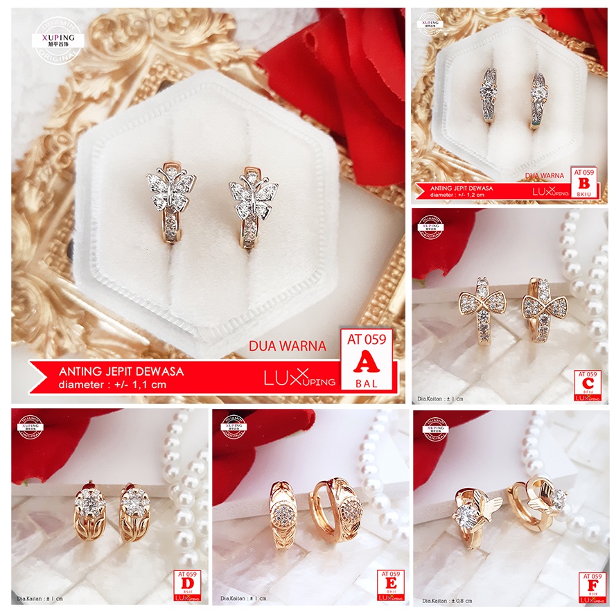 Detail AT 059 Anting Xuping Asli Kombinasi Silver Gold Permata Kristal Sirkon Perhiasan Lapis Emas 18K Imitasi Luxx Xuping
