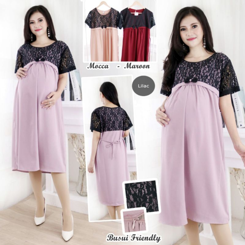 Pakaian Wanita > Baju Hamil > Dress Hamil > AT142A Dress Hamil Menyusui Brukat