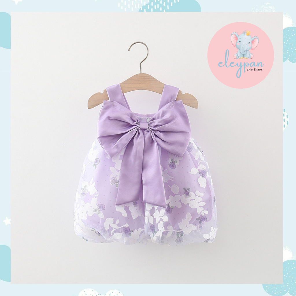 Detail Atasan Anak Perempuan Import Model Balon Pita Ungu Lilac Balloon Top