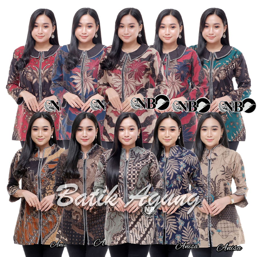 Atasan Baju Batik Blouse Kerja Kondangan Wanita Dewasa Ziper Modern Modis Trendy Katun Halus Adem