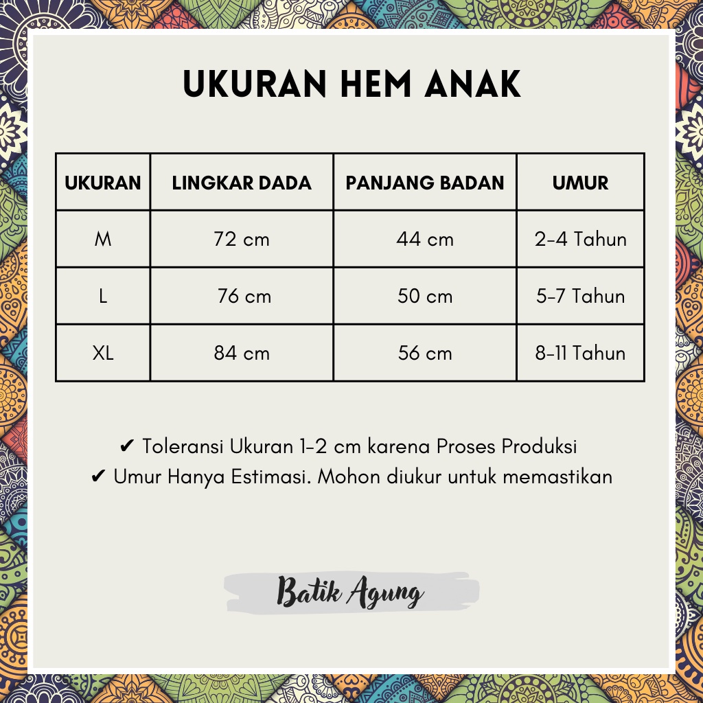 ➖ DETAIL UKURAN ➖ ✔ Hem Pendek M : (LD : 72 cm x PB : 44 cm = Umur 2-4 Tahun) L : (LD : 76 cm x PB : 50 cm = Umur 5-7 Tahun) XL : (LD : 84 cm x PB : 56 cm = Umur 8-11 Tahun) ✔ Kemeja Panjang M : (LD : 72 cm x PB : 44 cm = Umur 2-4 Tahun) L : (LD : 76 cm x PB : 48 cm = Umur 5-7 Tahun) XL : (LD : 84 cm x PB : 55 cm = Umur 8-10 Tahun) XXL : (LD : 92 cm x PB : 57 cm = Umur 11-13 Tahun)