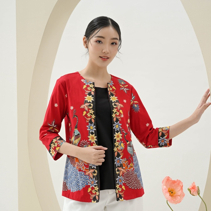 Atasan Batik 242 BBC Red/Batik Kantor /Batik Wanita Modern/Baju Imlek/ Batik Jumbo/ Batik Pasangan/ Batik Family/ Seragam Batik/ Batik Jumbo