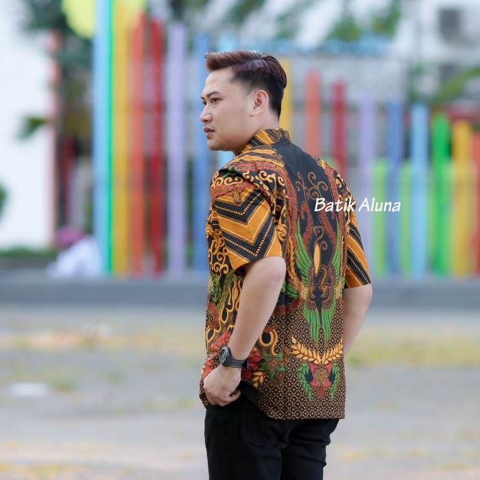 Detail Atasan Batik Pria Furing Kwalitas Premium Lengan Pendk Pabrik Batik Aluna PD 004