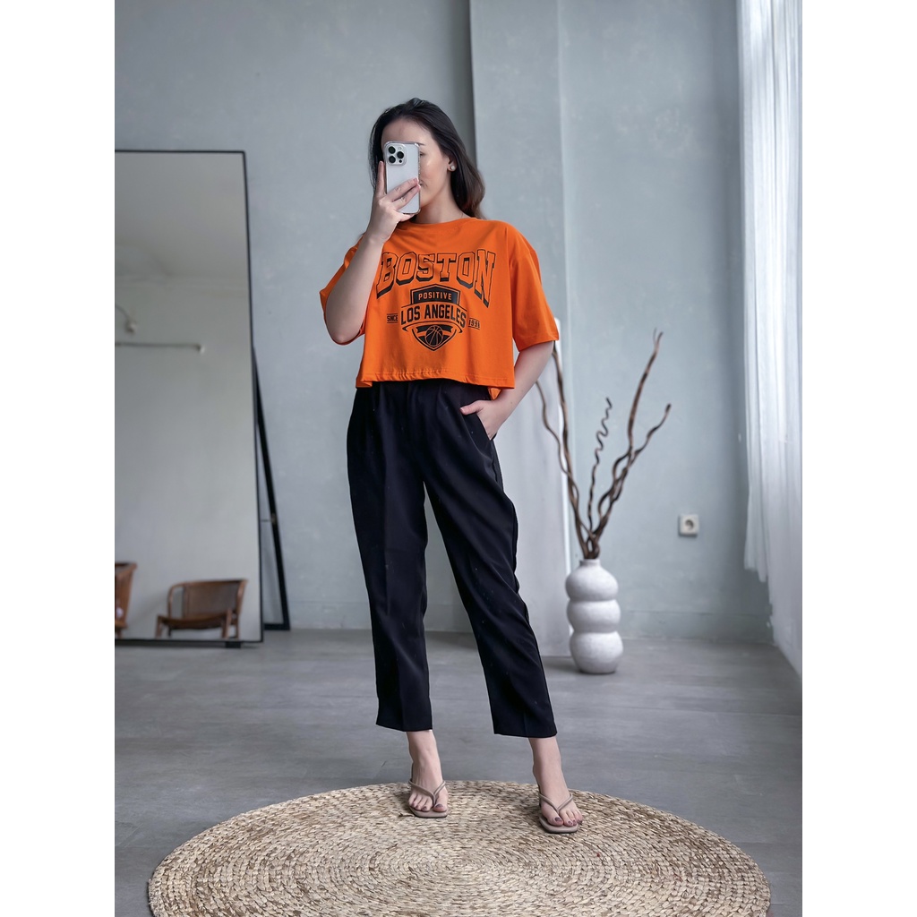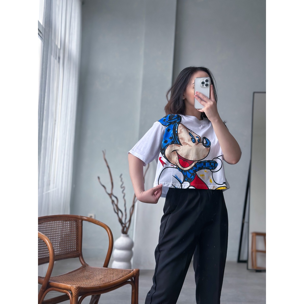 Detail Atasan Crop Top Oversized Wanita Lengan Pendek Bahan Katun