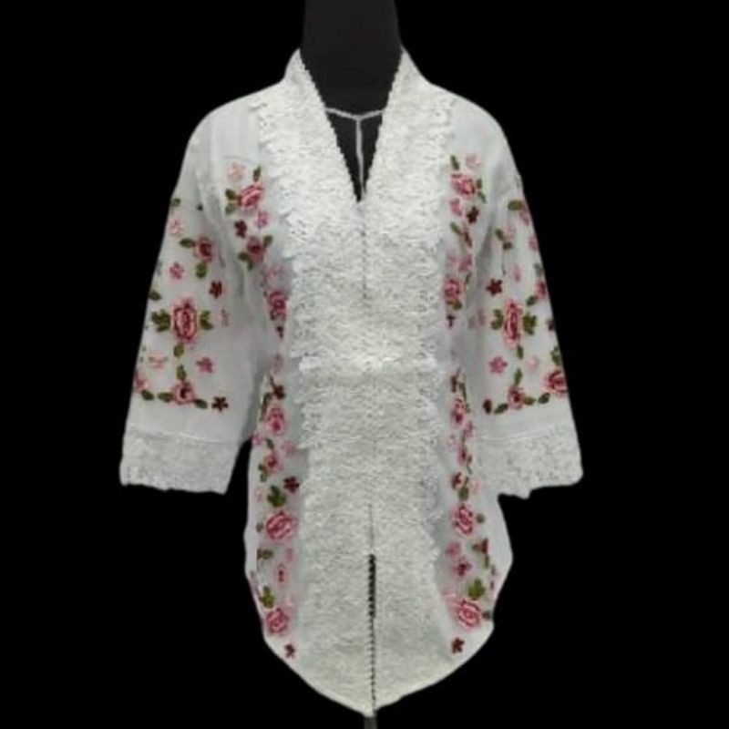 Atasan Kebaya Encim Modern Jumbo Katun Linen Bordir Kombinasi Brukat Premium Import Abaya Wanita
