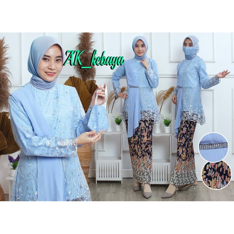 SET KEBAYA BLOUSE AMALIA /AURORA SELENDANG CERUTY MATERIAL = ➡️ BAHAN KEBAYA : TULLE ( ada furing nya ) ➡️ FREE MASKER ➡️ SIZE : LD (lingkar dada)